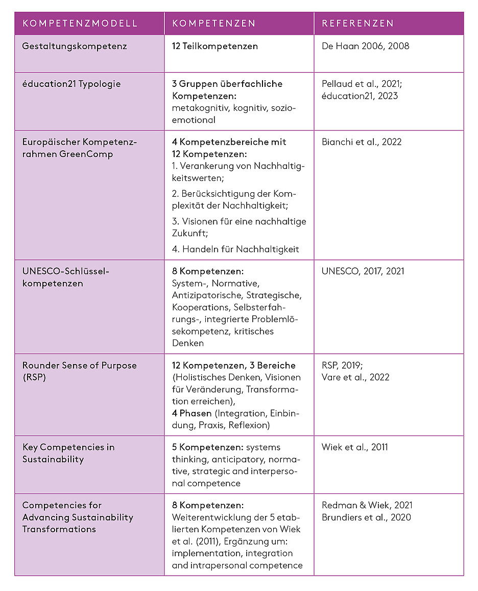 Überblick: Kompetenzmodelle der Nachhaltigkeit